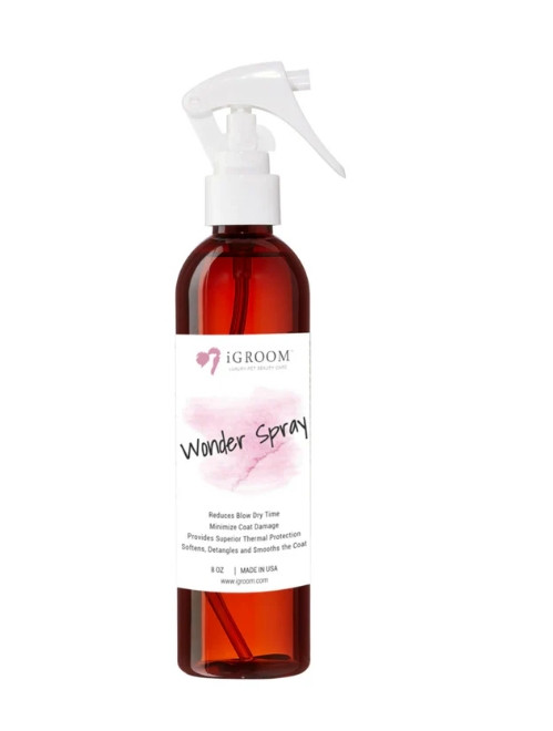 iGroom Wonder Spray is a multi-purpose professional spray designed to speed up drying time, protect the coat, and make grooming easier. Its advanced formula: