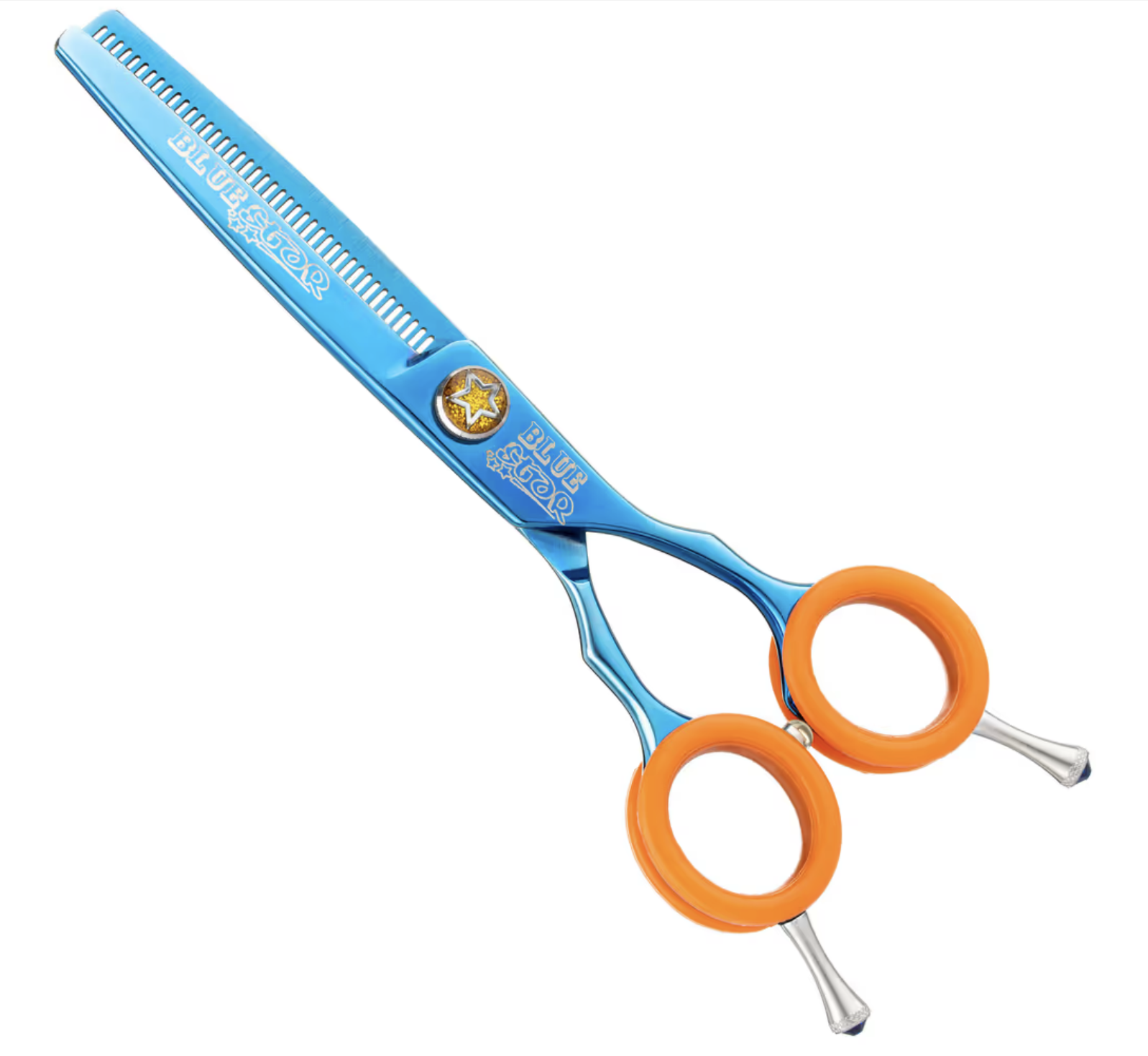 Profesionalne škarje za oblikovanje dlake, blagovne znamke Power & Working Scissors, model Blue Star, dolžine 6,0 z 42 zobci na eni strani. Uporabljajo jih znani vzreditelji in pasji frizerji ter razstavljavci po vsem svetu, namenjene so tako profesionalcem, kot tudi za domačo uporabo. Njihova ostra rezalna površina omogoča natančno in gladko striženje ter oblikovanje dlake. Vsako rezilo ima mikroskopsko brušeno površino, kar preprečuje zdrs dlake med striženjem. Pakirane so v etuiju z logotipom proizvajalca.