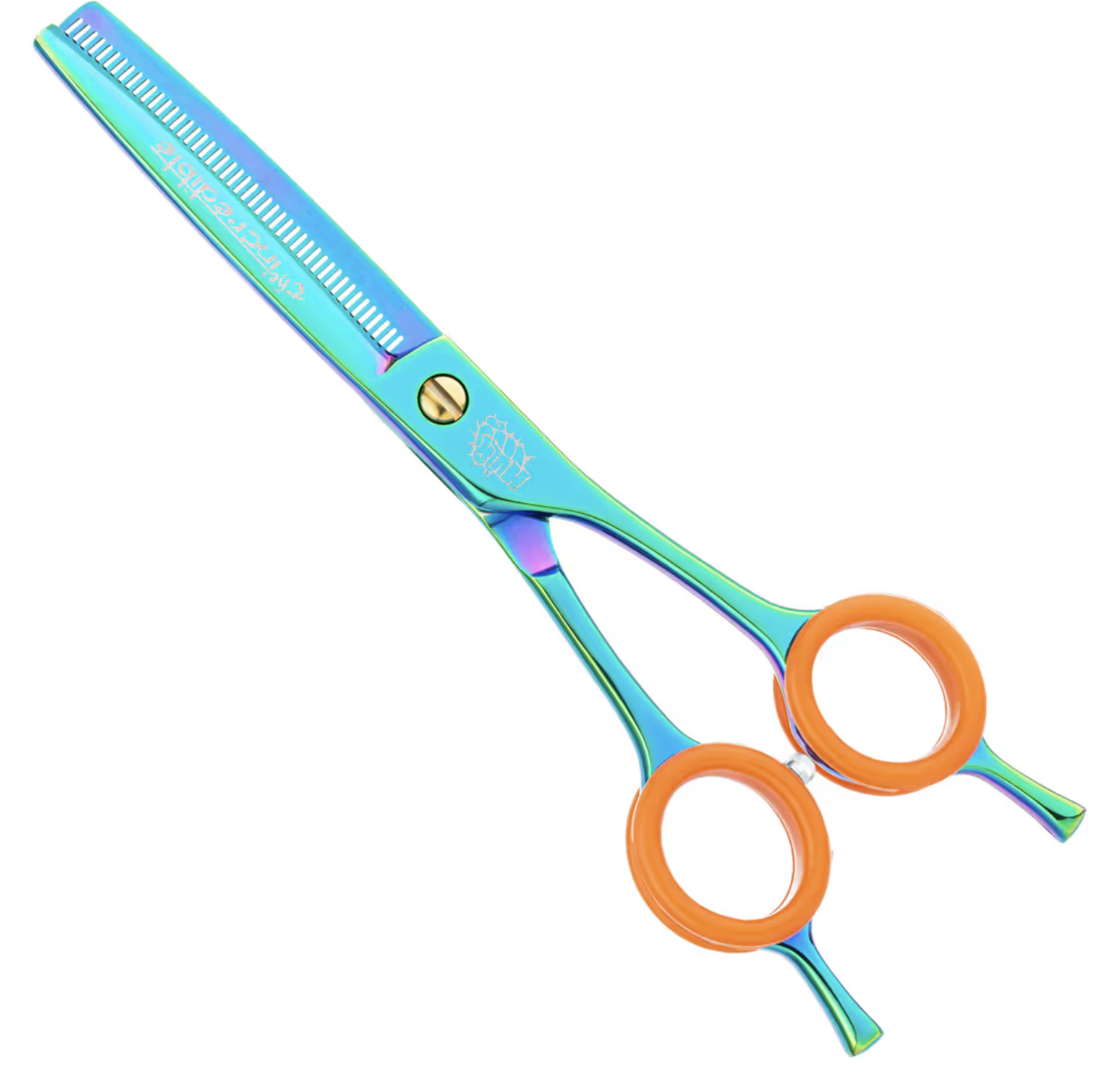 Profesionalne škarje za redčenje in oblikovanje dlake, enostranske, blagovne znamke Power & Working Scissors, model HULK z 49 zobci dolžine 7,0. Uporabljajo jih znani vzreditelji in pasji frizerji ter razstavljavci po vsem svetu, namenjene so tako profesionalcem, kot tudi za domačo uporabo. Njihova ostra rezalna površina omogoča natančno in gladko redčenje ter oblikovanje dlake. Vsak zobec ima mikroskopsko brušeno površino, kar preprečuje zdrs dlake med striženjem. Pakirane so v etuiju z logotipom proizvajalca.